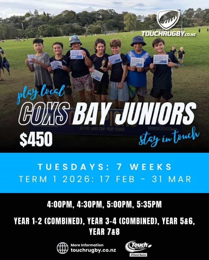 Get your kids active, outdoors and having fun in Term 1 with Junior Touch Rugby at Cox's Bay.